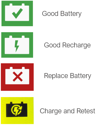 Battery test results are provided on-screen, through the printout or as an email. All results are color-coded to indicate status